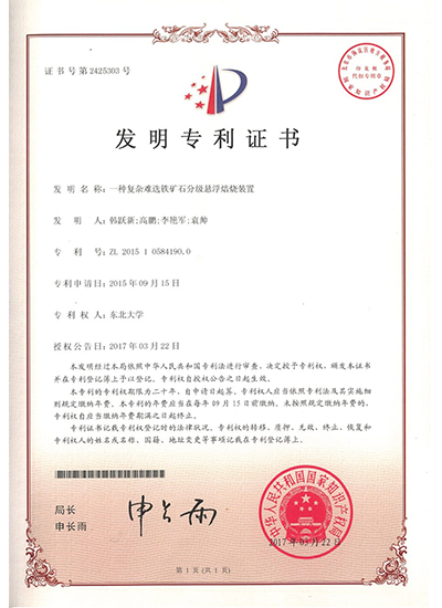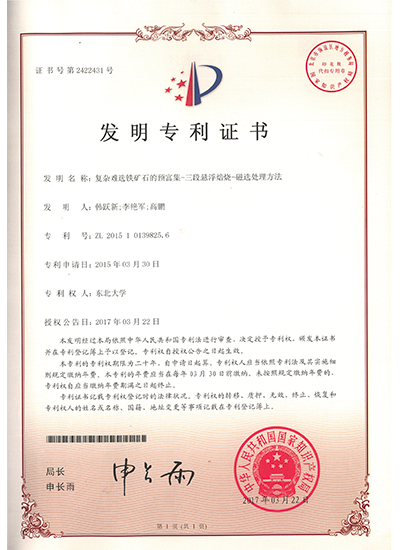 | 11 | 復(fù)雜難選鐵礦石的預(yù)富集-三段懸浮焙燒-磁選處理方法 | ZL 2015 1 0139825.6 | 發(fā)明專利 | 點(diǎn)擊查看 |
